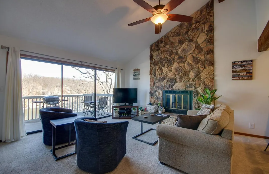 Pool And Lake Access Waterfront Osage Beach Retreat apartment offers a kitchen and a living room, as well as comforts like air conditioning. At the accommodation, guests will enjoy the convenience of dryers, complimentary toiletries, and towels in the bathroom. Furthermore, a separate toilet and a shower is available.